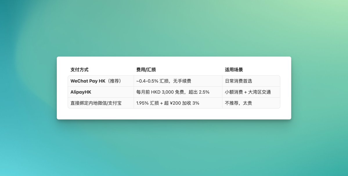 开了港卡最爽的一点:绑定微信香港钱包后,在内地扫码消费跟平时一样。关键是不占用每年 5 万美元的个人结汇额度——这不比换汇强?