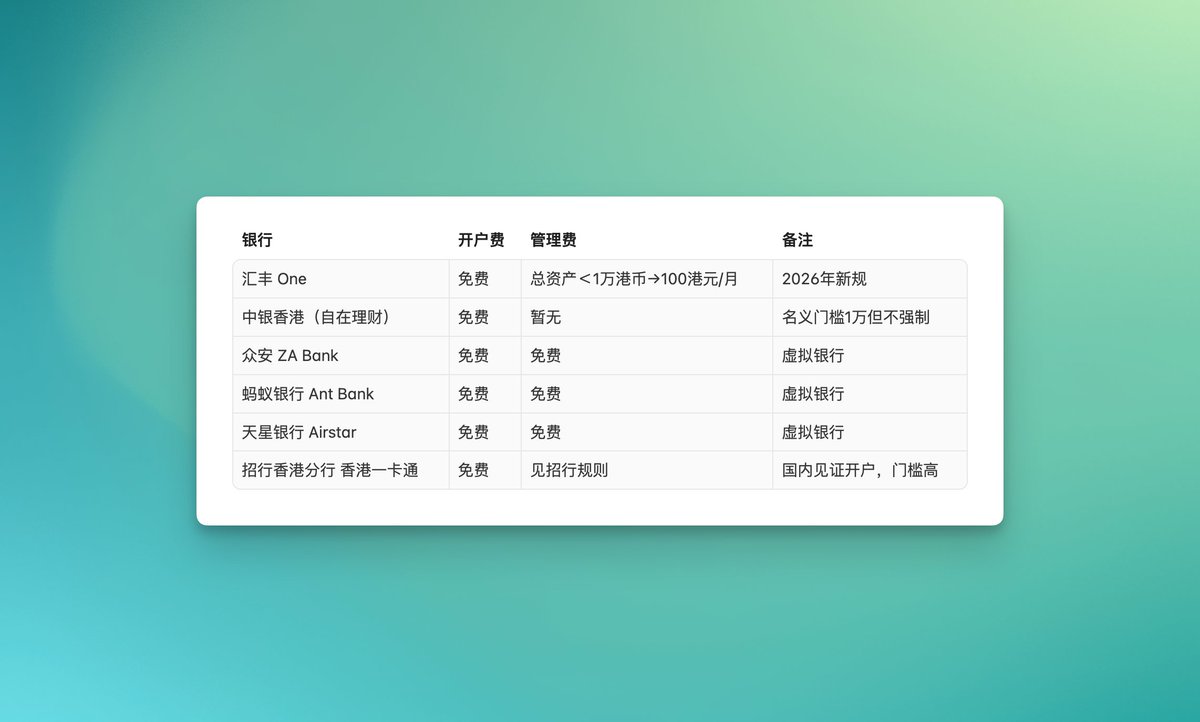 - ⚠️ 2026年1月起,汇丰 One 新规:总资产不足 1万港币 需每月缴 100港元管理费