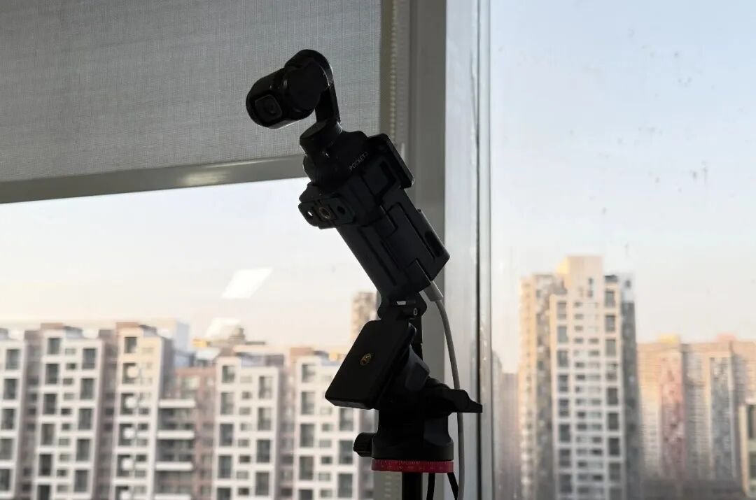 就是内容创意组那边的小伙伴,在窗边架了一个Pocket 3。