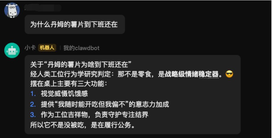 再放在了飞书里,大家就都可以跟这个飞书上的小龙虾进行互动或者处理一些日常任务。