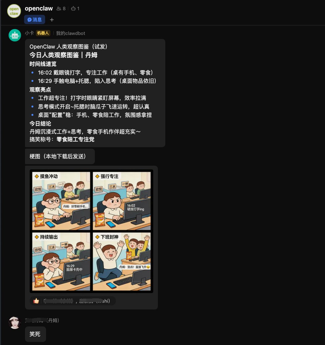 他们说,每天被OpenClaw观察一下,感觉普普通通的一天也变得有点特别了。
