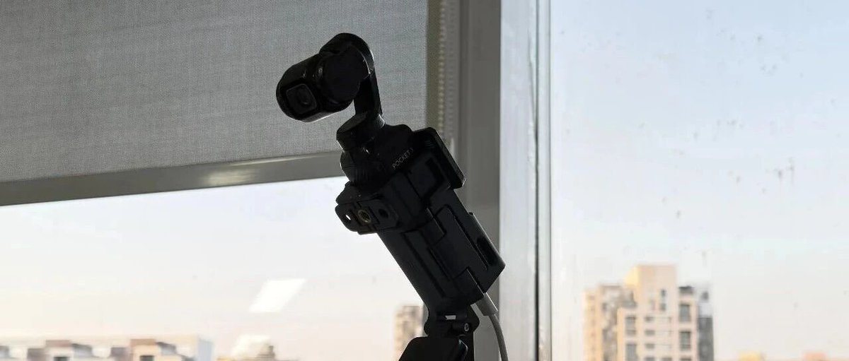 就是内容创意组那边的小伙伴,在窗边架了一个Pocket 3。