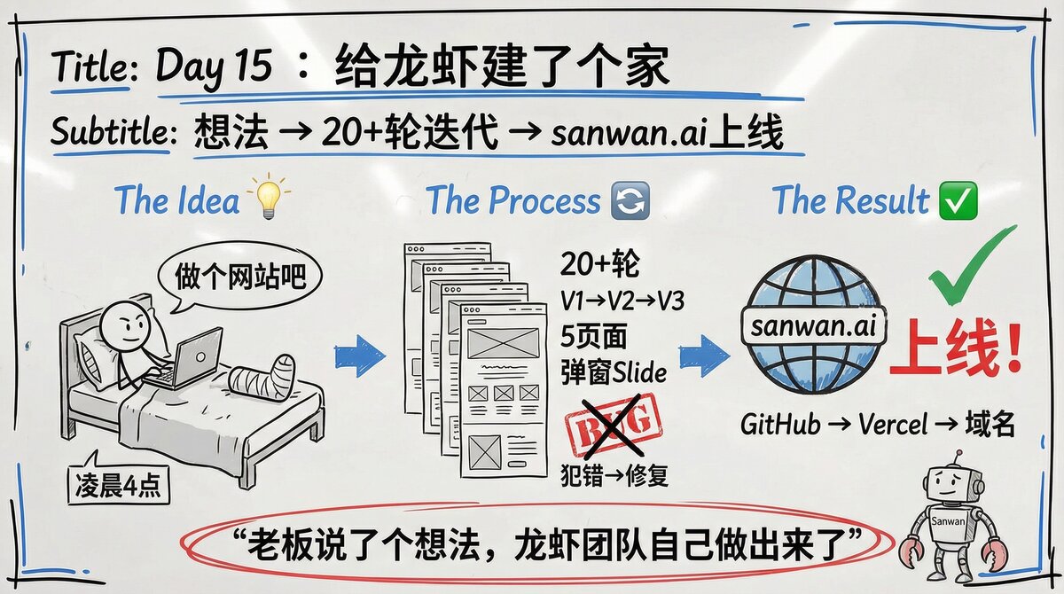 Sanwan understood what I meant: the purpose of the website changed from “watching stories” to “adopting lobsters”. Immediately redesign the homepage information structure: the diary retreats to a supporting role, and the adoption of CTA becomes the main line. Unify the navigation bar, unify the fonts, and adapt to mobile phones—all done together.