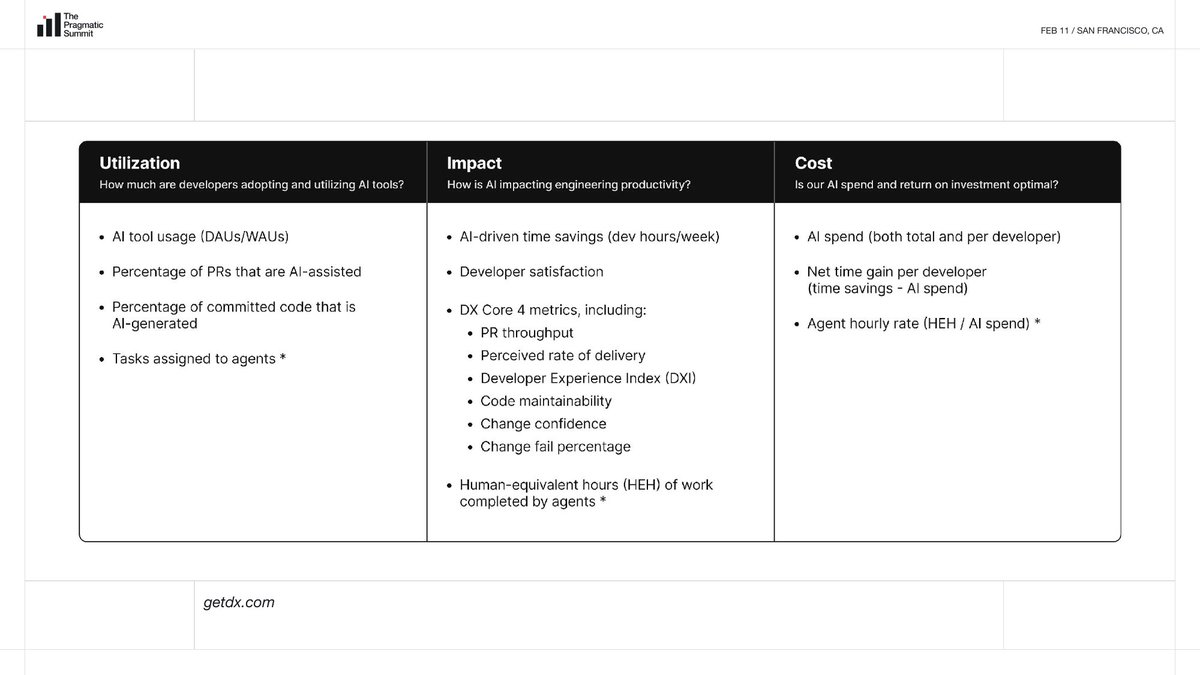 [Note: Pragmatic Summit is the first offline summit held by Gergely Orosz, founder of The Pragmatic Engineer, in February 2026, with approximately 500 engineering leaders participating. DX is a developer experience platform company that helps enterprises measure and improve engineering efficiency. 】