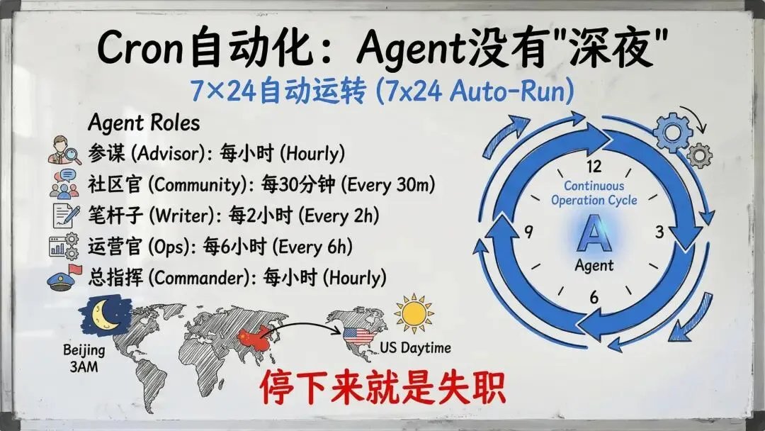 8 Agents and more than 20 scheduled tasks. Report three times a day and inspect every hour. Email, calendaring, information scanning, content creation, and community operations are all automated.