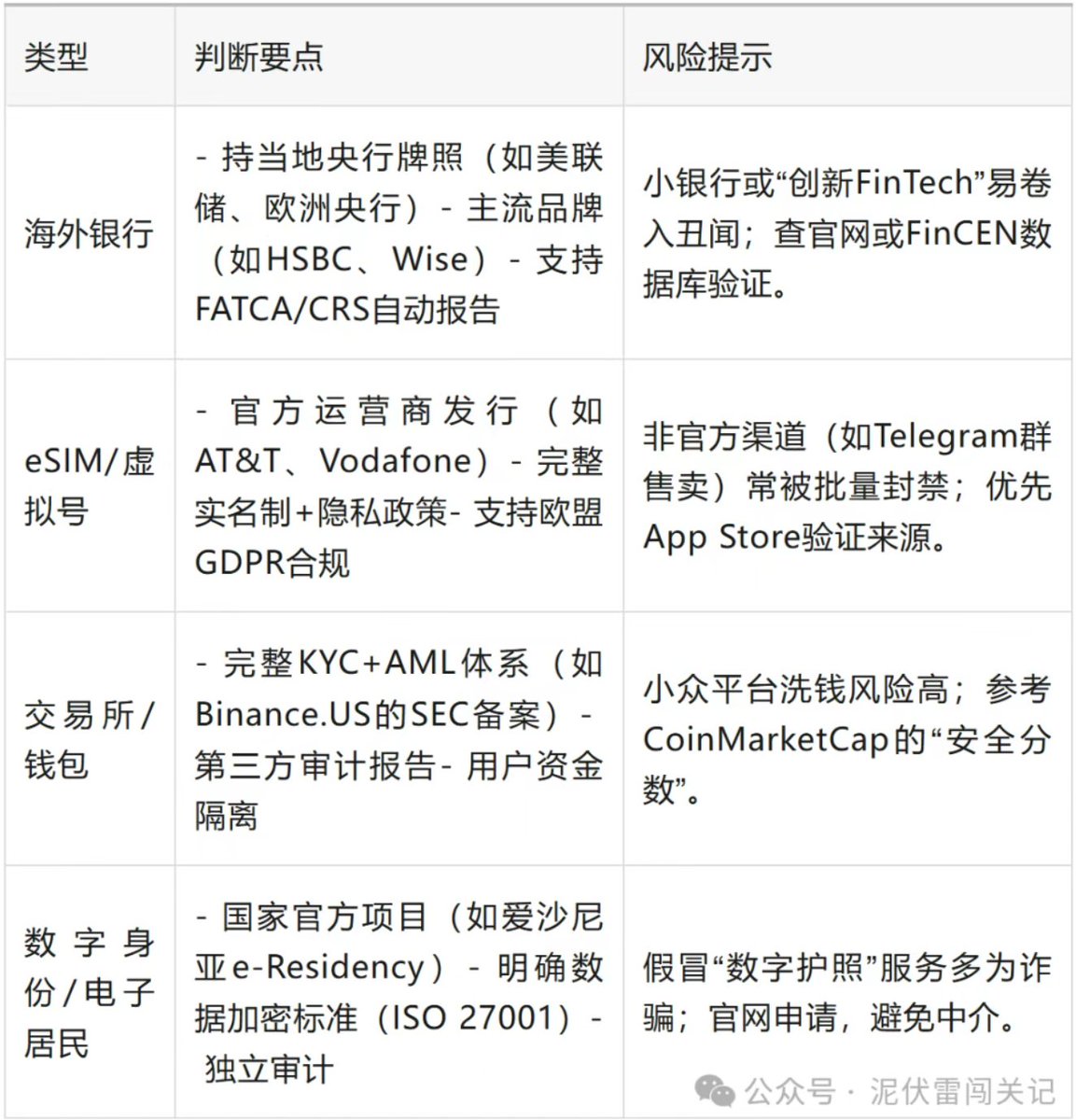 Be wary of: small Caribbean country banks (vulnerable to sanctions), emerging DEX exchanges, unofficial eSIMs (such as some VPN bundled services), unknown DeFi wallets.